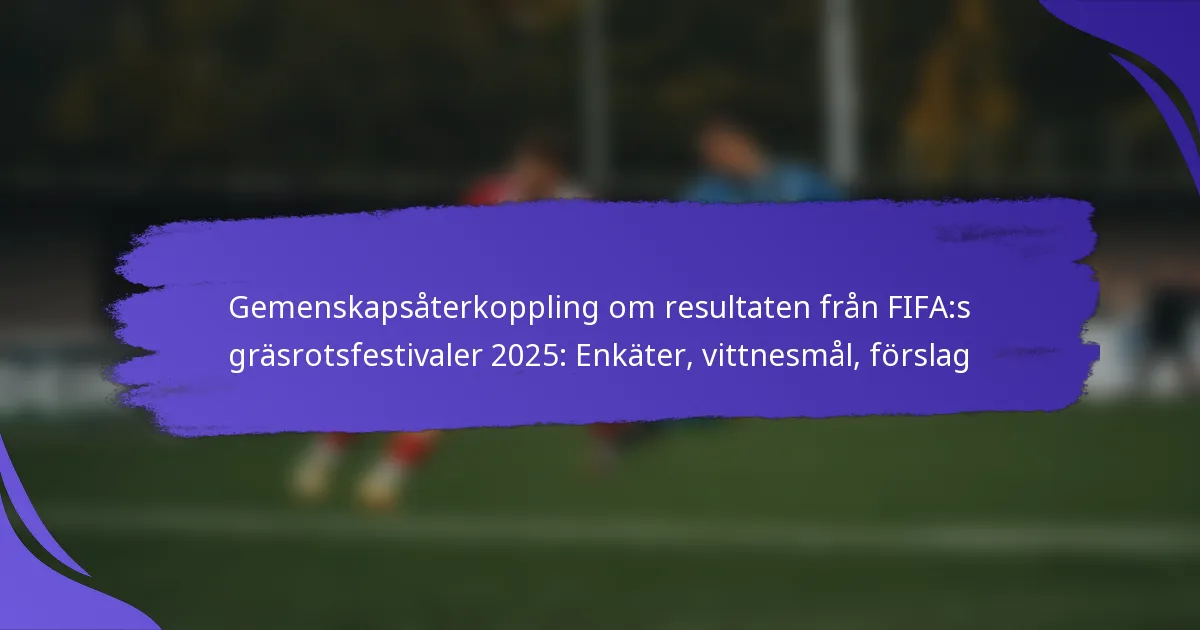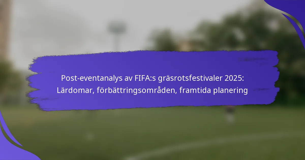 FIFA Grassroots Festivals 2025 engagerade framgångsrikt samhällen och främjade deltagande i fotbollsutveckling, vilket gav värdefulla insikter för framtida evenemang. Nyckelresultat inkluderade stark närvaro och mångfaldigt deltagande, tillsammans med konstruktiv feedback som lyfte fram både styrkor och områden för förbättring. Genom att ta itu med logistiska utmaningar och förfina engagemangsstrategier kan framtida festivaler förbättra den övergripande upplevelsen och effektiviteten av gräsrotsfotbollsinitiativ.