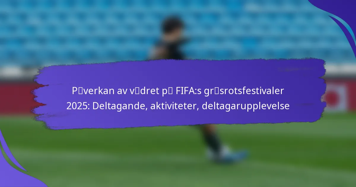 Deltagarnöjdheten vid FIFA Grassroots Festivals 2025 påverkades av flera nyckelfaktorer, inklusive kvaliteten på aktiviteterna, effektiv organisation och möjligheter till nätverkande. Feedbacken framhöll vikten av tillgänglighetsåtgärder och den övergripande platsupplevelsen för att öka engagemanget och gemenskapsbyggandet.